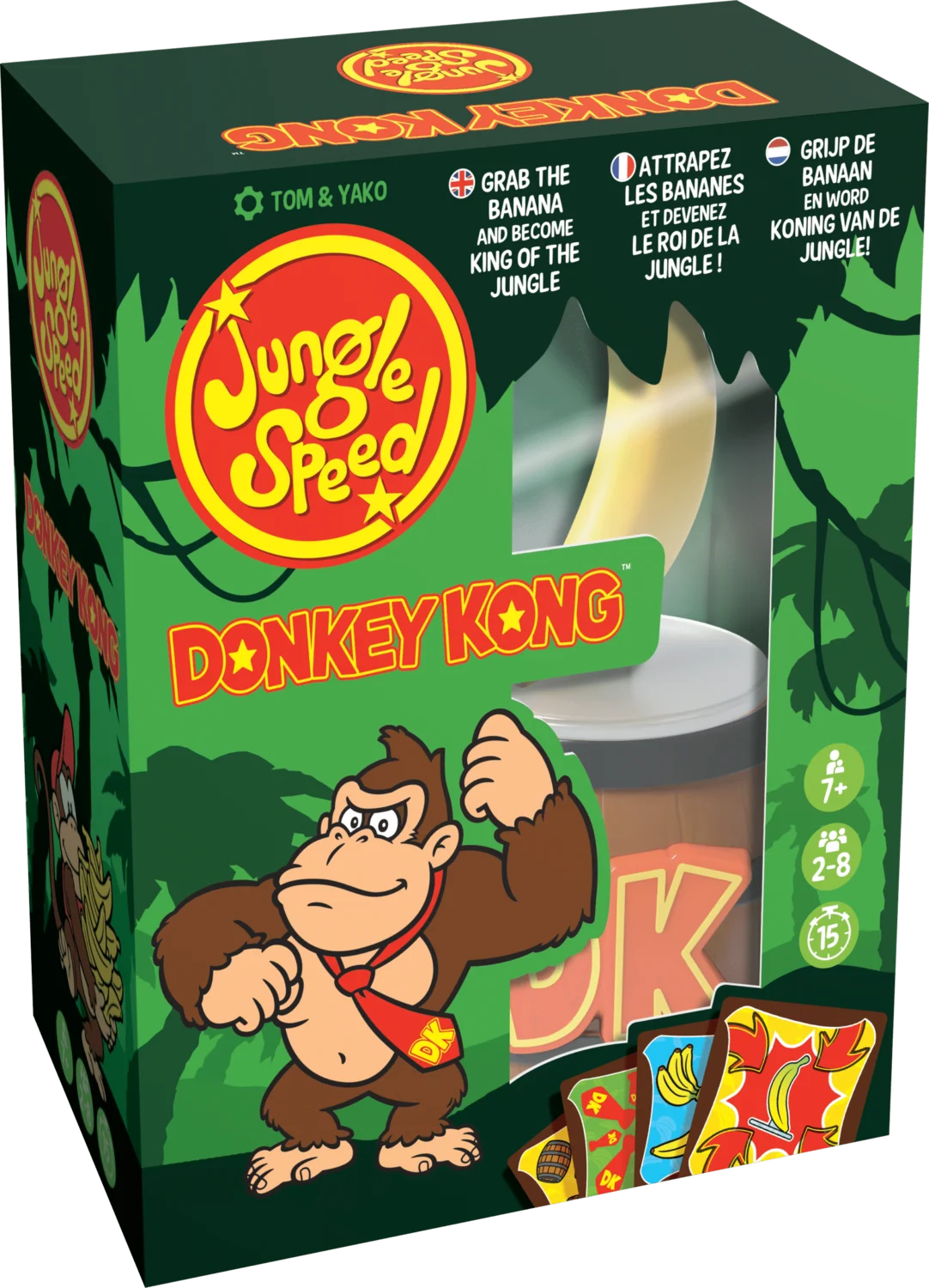 Retrouvez toute l’énergie de Jungle Speed dans une version inédite aux couleurs du célèbre Donkey Kong ! Avec Jungle Speed Donkey Kong, rapidité, observation et réflexes sont plus que jamais au rendez-vous, dans un univers fun et coloré inspiré du jeu vidéo culte de Nintendo.