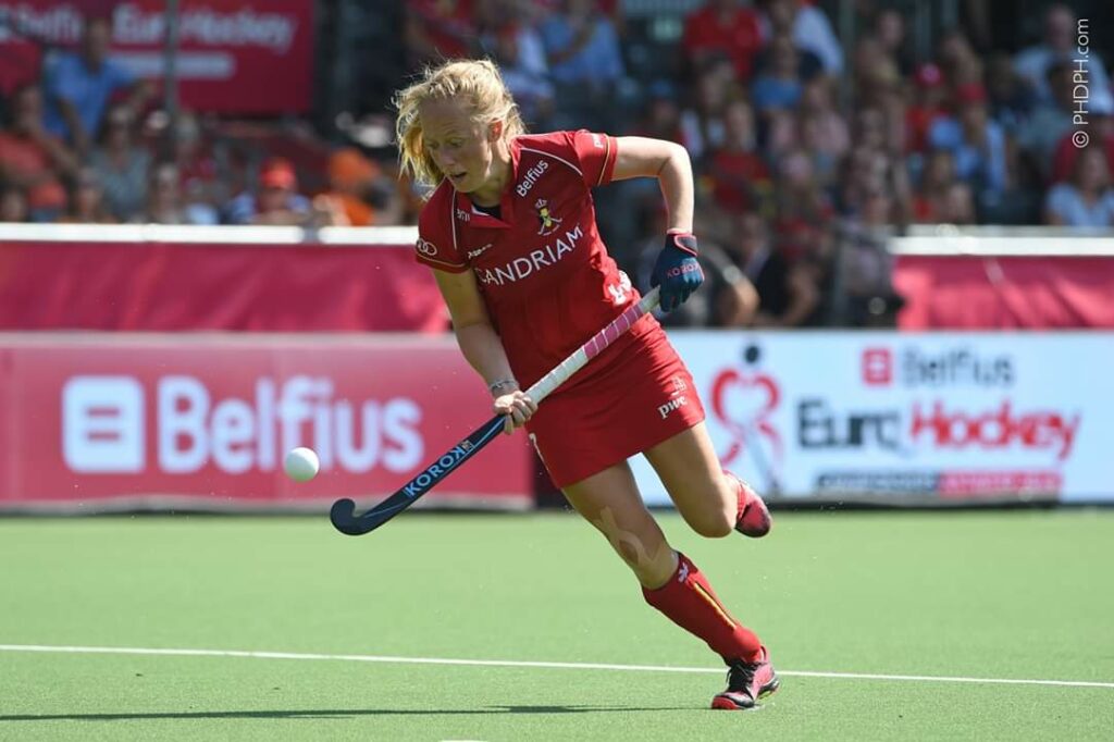 Déjà, c’est une histoire de famille. Fille et petite-fille de joueuses internationales, grande sœur du charismatique champion olympique Tom Boon, nièce du président de la fédération belge de hockey, Marc Coudron, elle n’a pas 5 ans qu’elle matche déjà avec les garçons en équipe, mixte encore à l’époque. Après un passage par un club hollandais hyperpro, elle décide à 22 ans de consacrer sa vie au stick de hockey. 302 sélections en équipe nationale, capitaine des Red Panthers, première hockeyeuse belge de l’histoire à inscrire un but lors de Jeux olympiques à Londres en 2012, médaille d’argent européenne en 2017 et mise à la retraite forcée de l’équipe nationale en 2019, trop vieille à 31 ans. Cette femme est une légende du hockey féminin belge. Mais la légende ne s’arrête pas au monde du sport, loin de là.