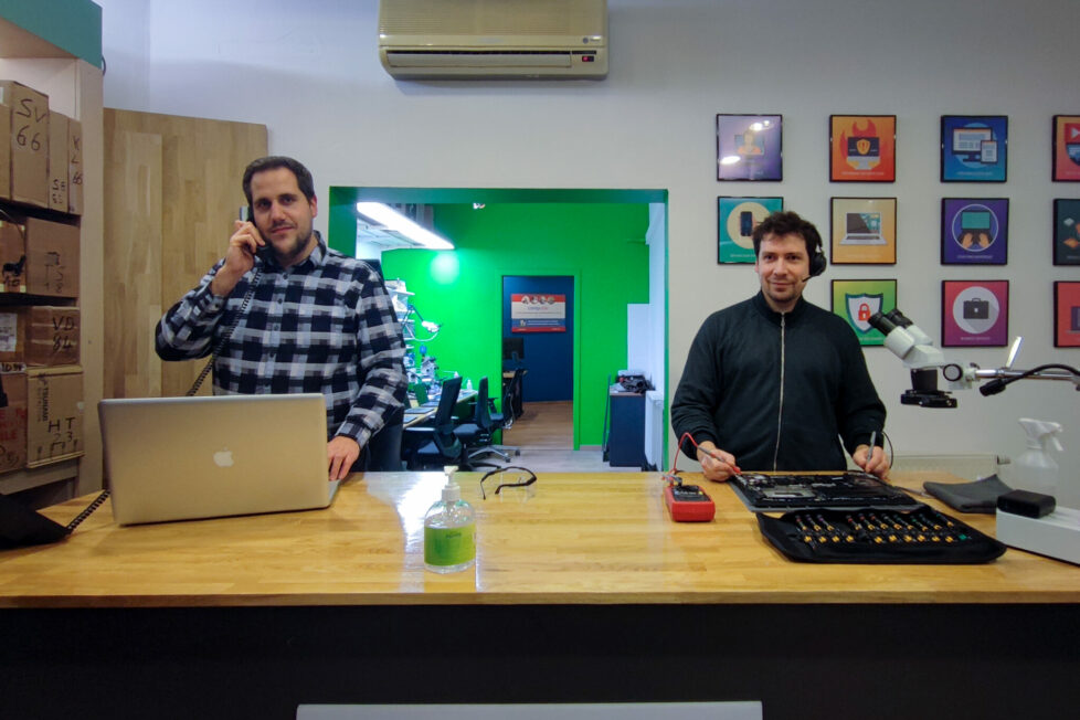 Dans les bureaux de Computile, on retrouve Flavien Roelandt, actif depuis 2015 dans le domaine de l’assistance informatique pour les particuliers, indépendants et PME, via télé-assistance ou sur site. A ses côtés, Laurent De Leeuw, gérant depuis 2017 de l’atelier Réparation Portable dans le centre-ville de Bruxelles ouvre ici un second atelier-magasin où il effectue des réparations matérielles sur des smartphones de toutes marques ainsi que sur des ordinateurs MAC ou PC.