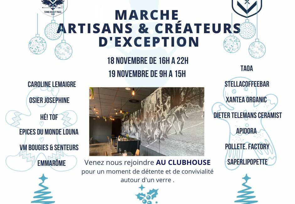 Suite à l’enthousiasme exprimé lors de leur première édition du mois d’octobre, le Club Pas Raisonnable et Le Royal Uccle Sport THCP ont le plaisir de vous inviter les vendredi et samedi 18 et 19 novembre à leur marché artisans & créateurs « Uccle Sport Prépare Noël ».